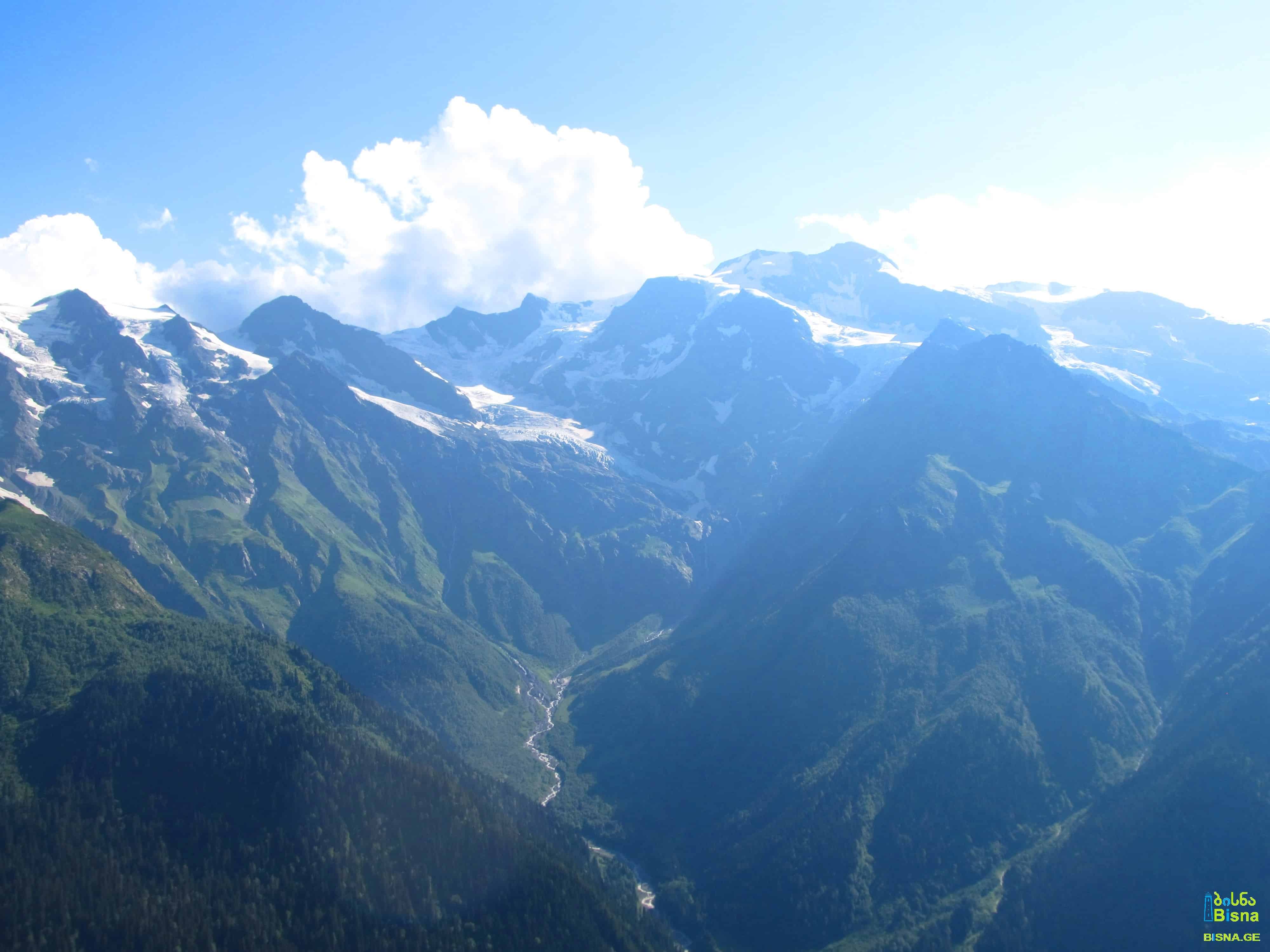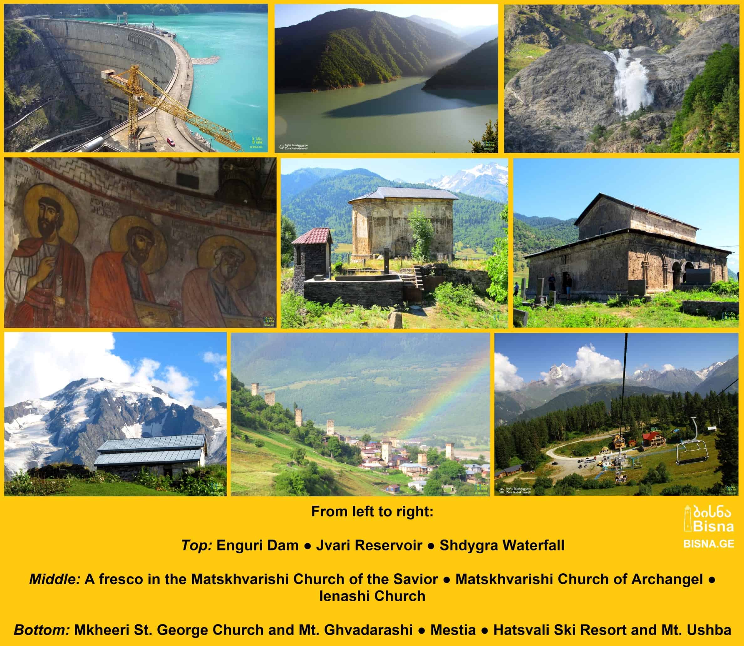In total, several km's light hiking (without backpack) that can be skipped by any tourist if desired. In this case the tourist misses the following sightseeing: 1. Shdygra Waterfall; 2. Mkheeri St. George Church; 3. Lagurka Church; 4. Source of Enguri Riv