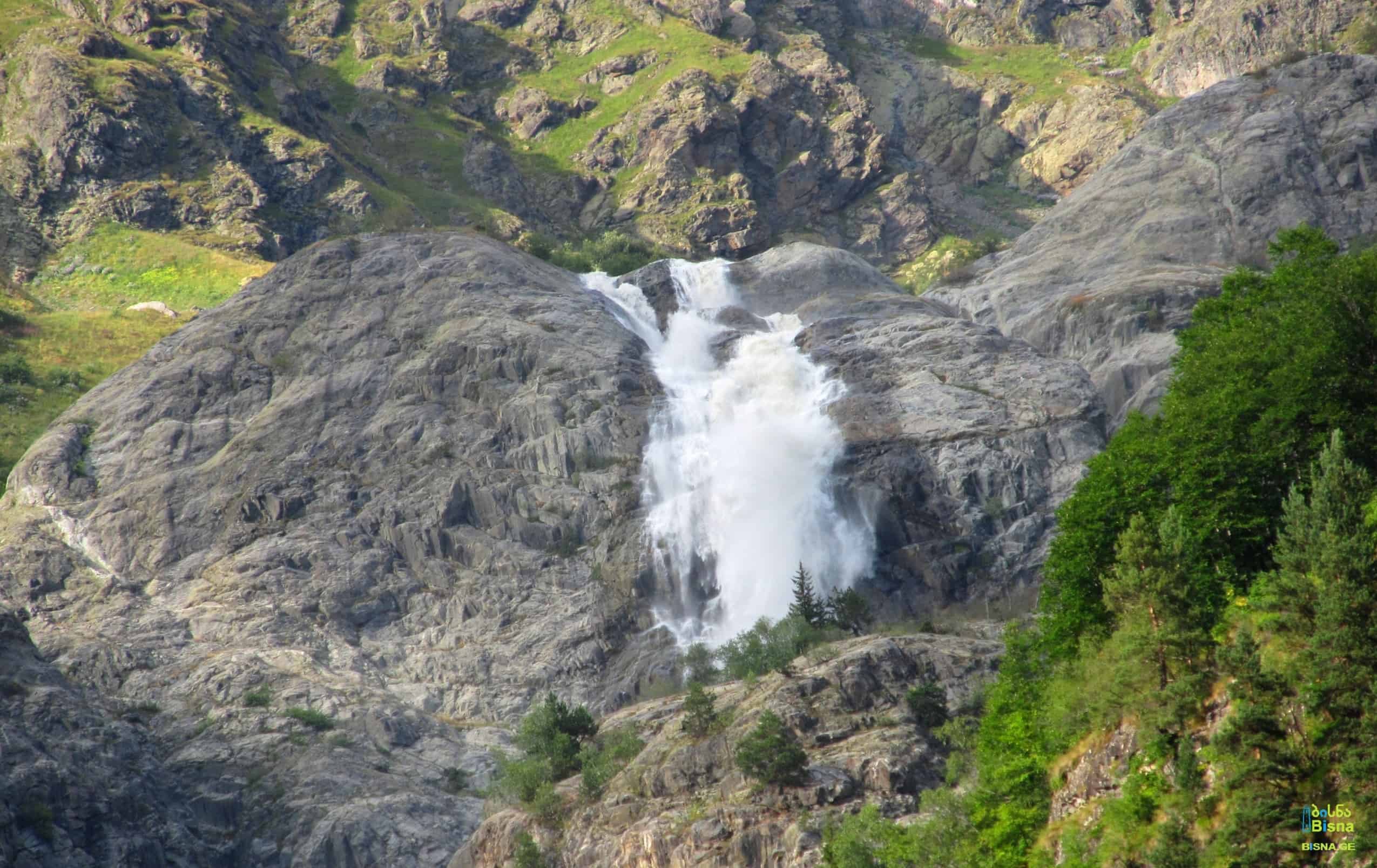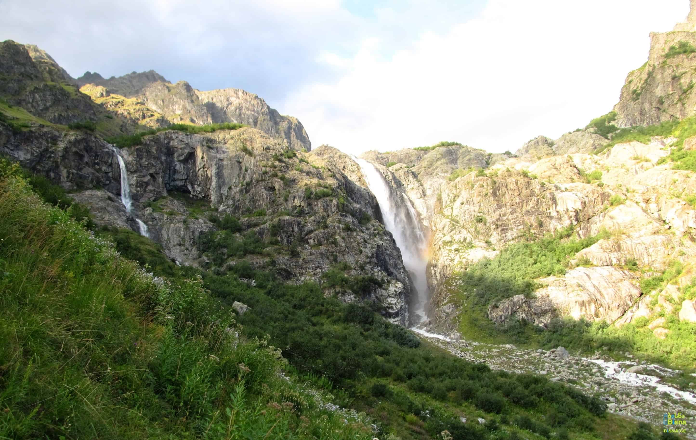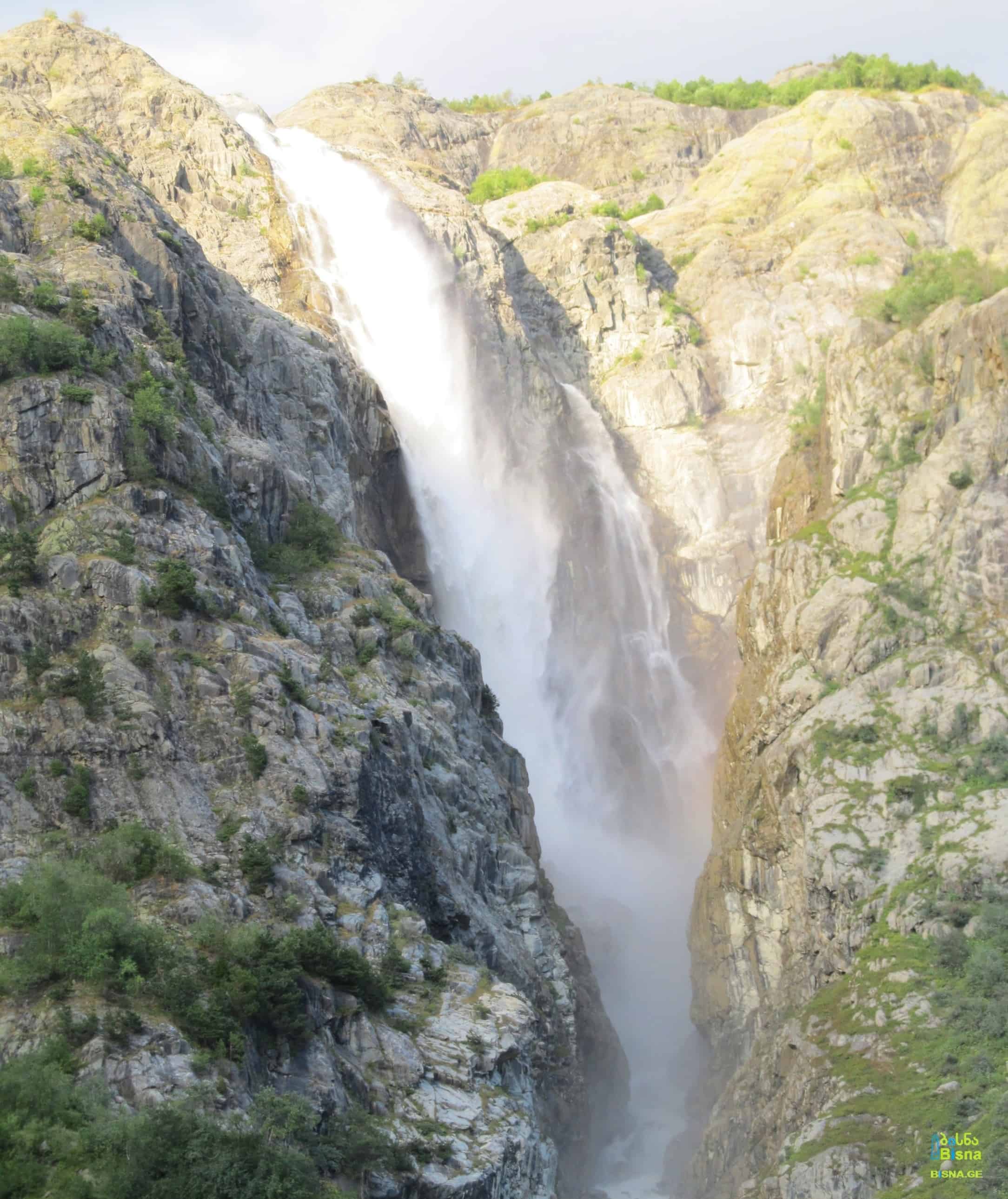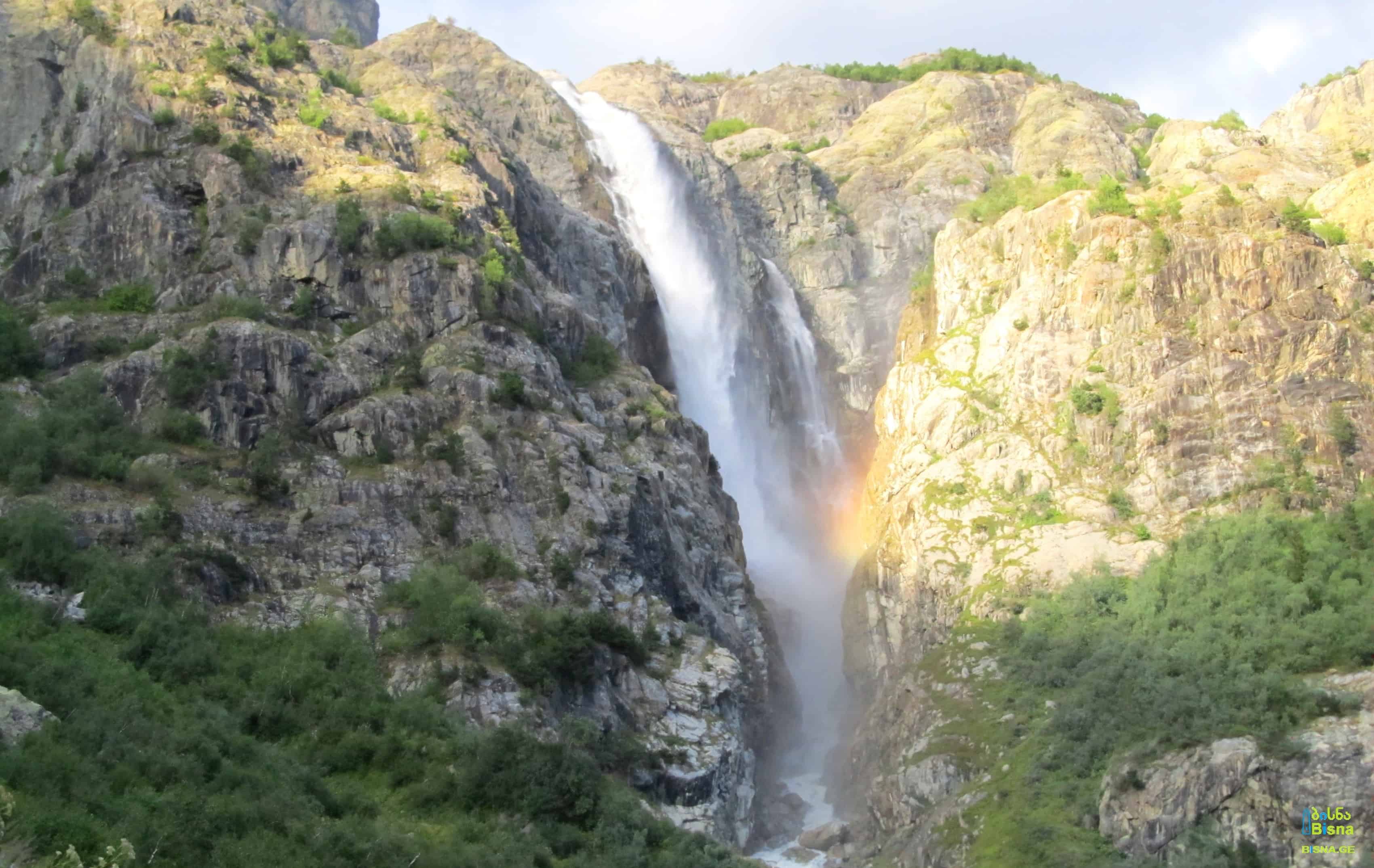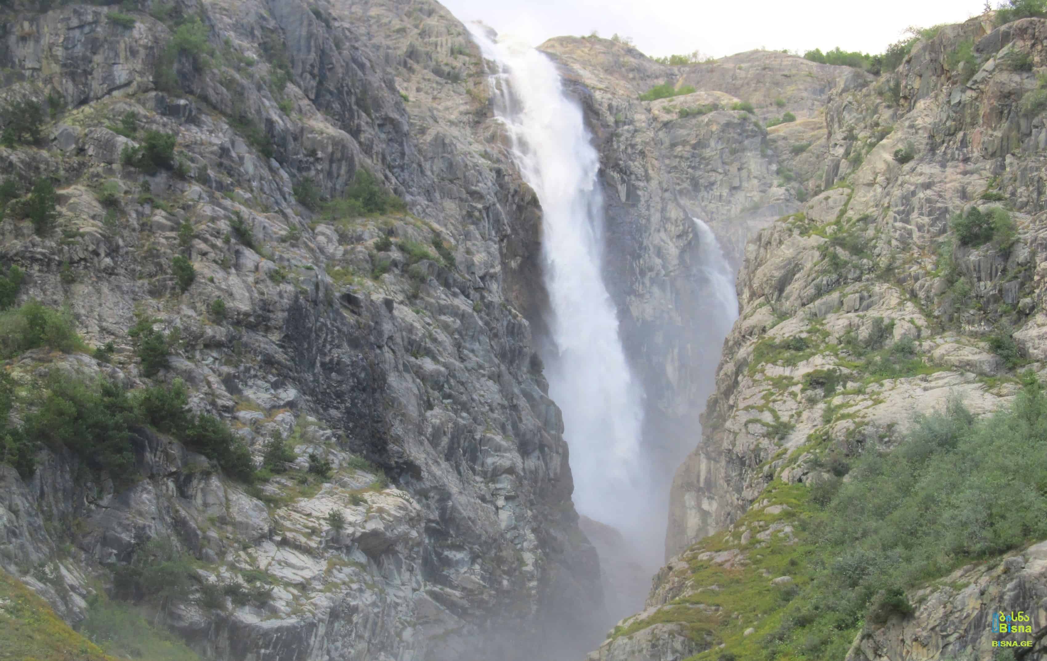 After a few kilometers of light hiking, behold one of Georgia's largest and tallest waterfalls. Situated on the left tributary of the Dolra River in Becho, Zemo Svaneti.