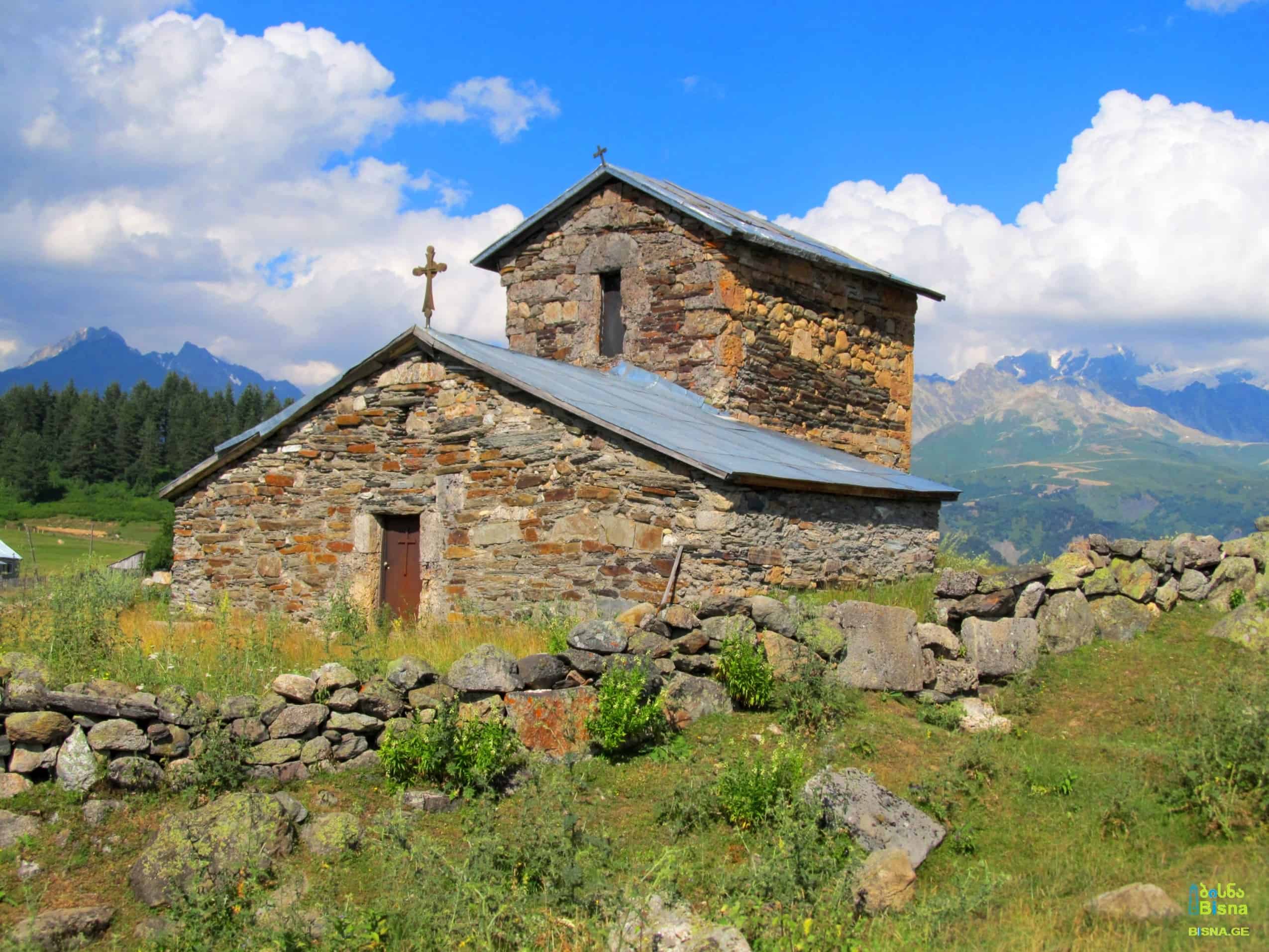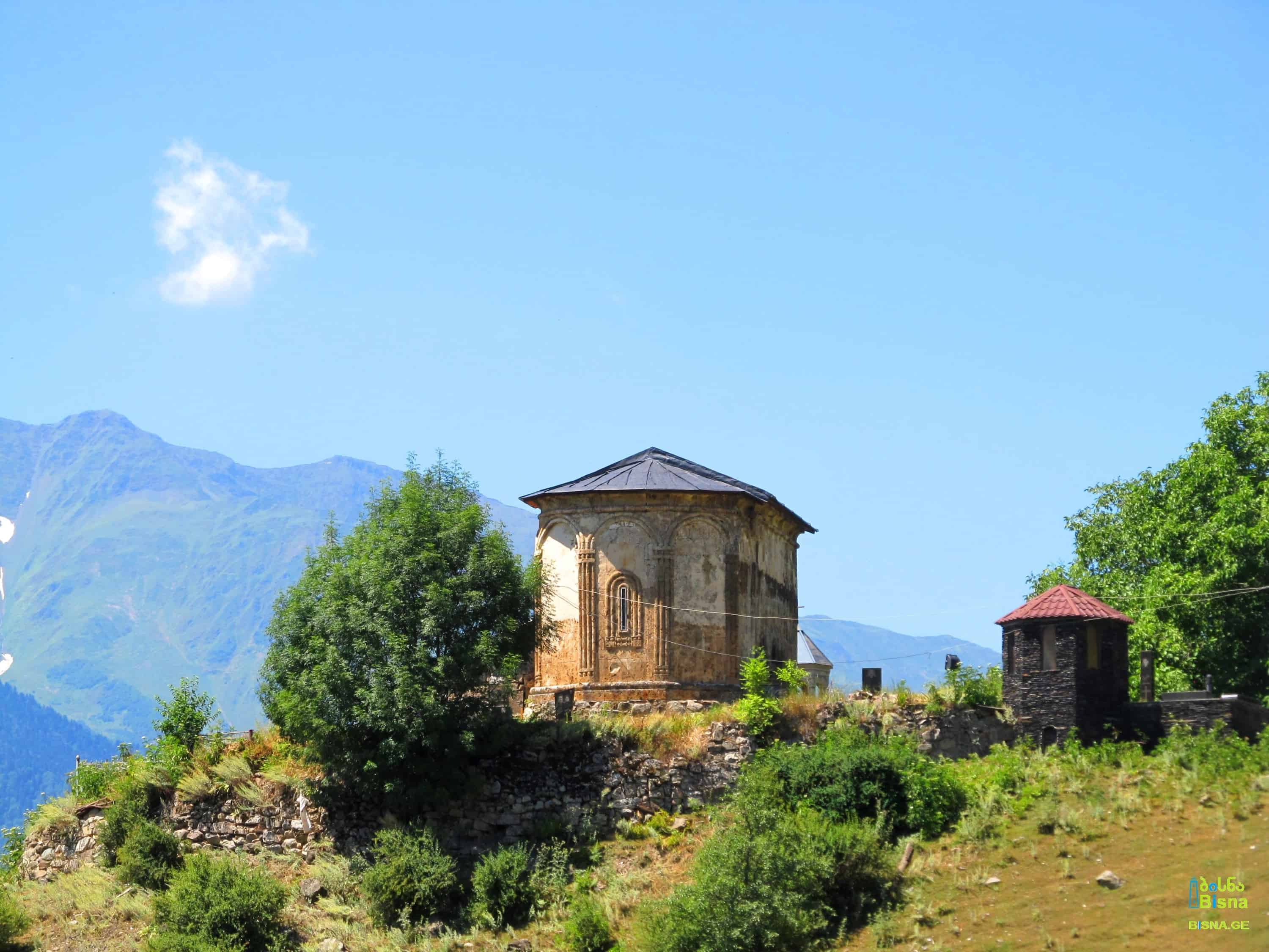 Embark on a several-kilometer ascent to discover this temple atop a range, offering breathtaking 360-degree views of Svaneti and the Caucasus Ranges, as well as the Enguri Valley. Accessible via a steep path beginning from Latali Temi and traversing heavily forested slopes.